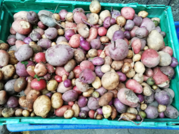 Potatoes We are surprised by how different potatoes from the garden taste compared to potatoes from the factory farm. They taste! We grow different varieties which complement different menus. Some are more floury, some more waxy, some light, some dark and some weird shapes - eg fingerlings like Pink Fir Apple. And for a special occasion we have a few violettas which are purple all the way through! Potatoes might seem innocuous but they are a valuable part of your diet because, for the weight, they are low in calories. 100g of bread, rice or pasta will give you around 400 calories, but you'll only get 80 from 100g of potatoes. Plus they have vitamins and minerals, especially in the skin and especially in red potatoes. They offer B-complex vitamins such as pyridoxine (vitamin B6), thiamin, niacin, pantothenic acid, and folates, vitamin-C and many essential minerals like iron, manganese, magnesium, phosphorous, and copper. |